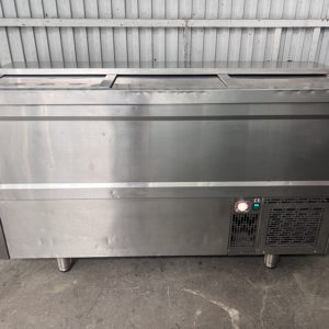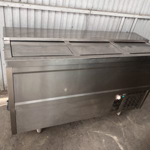 Bajo mostrador pizzero con vitrina ingredientes.