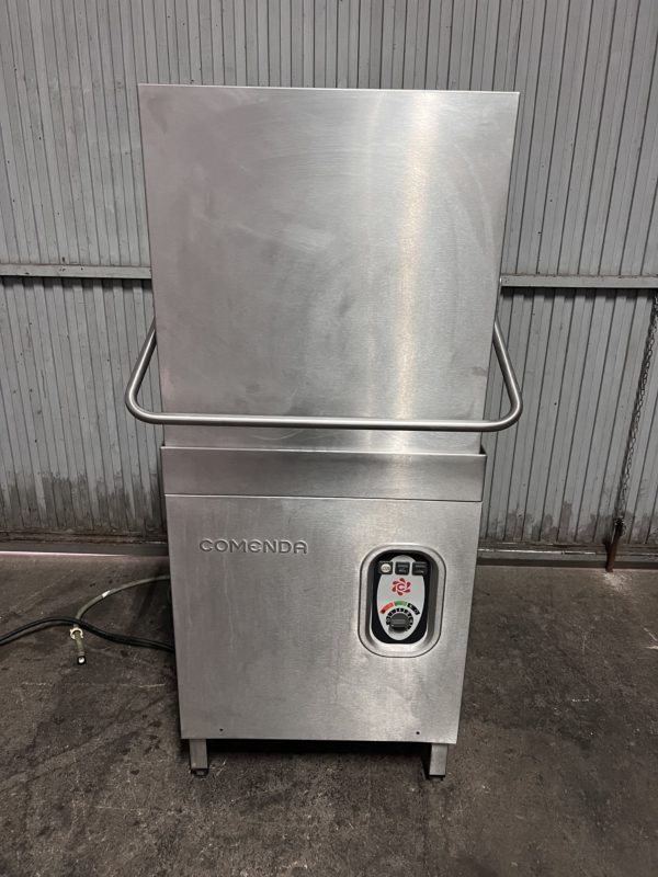 lavavajillas industrial/profesional de cúpula de la marca Comenda, fabricada en acero inoxidable.