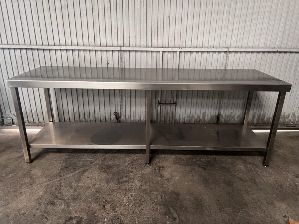 Mesa central de acero inoxidable con 1 estante inferior regulable en 2 alturas, de la marca Distform.