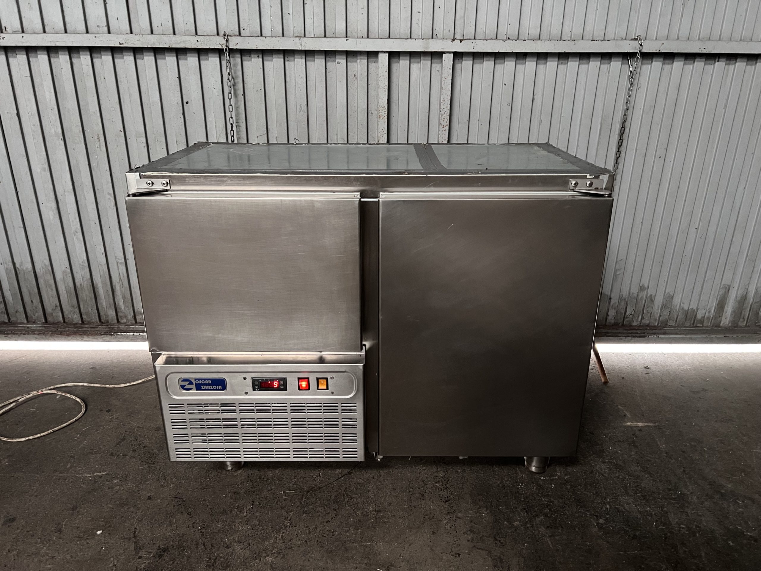 Nevera bajo mostrador, mesa fría de 2 puertas en acero inoxidable, sin sobre, ideal para poner bajo barra, de la marca Oscar Zarzosa.