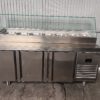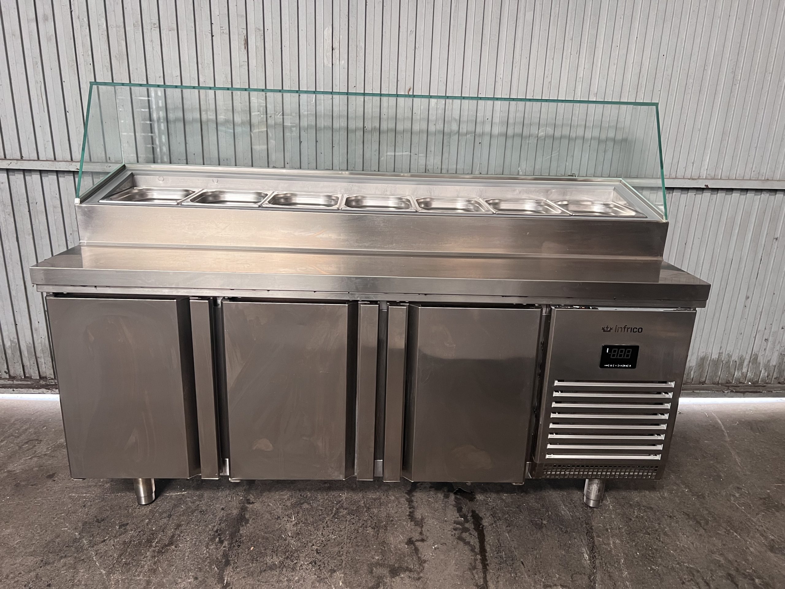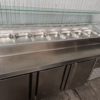 Nevera bajo mostrador/mesa fría para preparar ensaladas/ingredientes de 3 puertas de la marca Infrico en acero inoxidable.