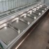 Arriba tiene para 7 cunetas Gn inox de 1/2-40, internamente tiene estantes de la medida Gn 1/1.