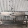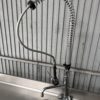 Fregadero de 1 seno con grifo ducha y 1 estante inferior, de la marca Distform, en acero inoxidable.
