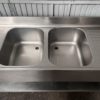 Fregadero de 2 senos, escurridor y 1 estante inferior, en acero inoxidable.