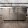Mesa con 3 puertas, 1 cajón y 1 estante interior, en acero inoxidable.
