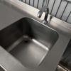 Mesa mural de trabajo con 1 fregadero, en acero inoxidable.